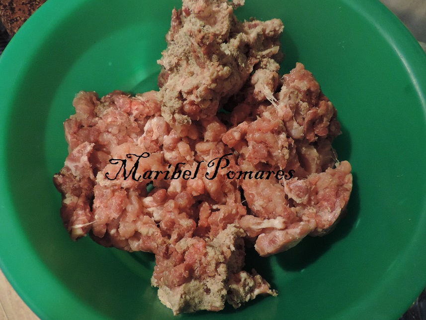 Pedimos en a carnicería que nos hagan el picadillo, aquí tengo la carne y lo que se ve mas blanco es el embutido.