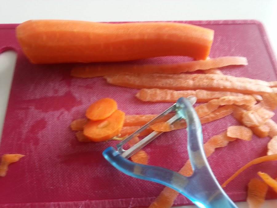 1. - Pelamos y troceamos la zanahoria.