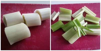 3. - Enjuagamos el apio y el puerro y lo cortamos.