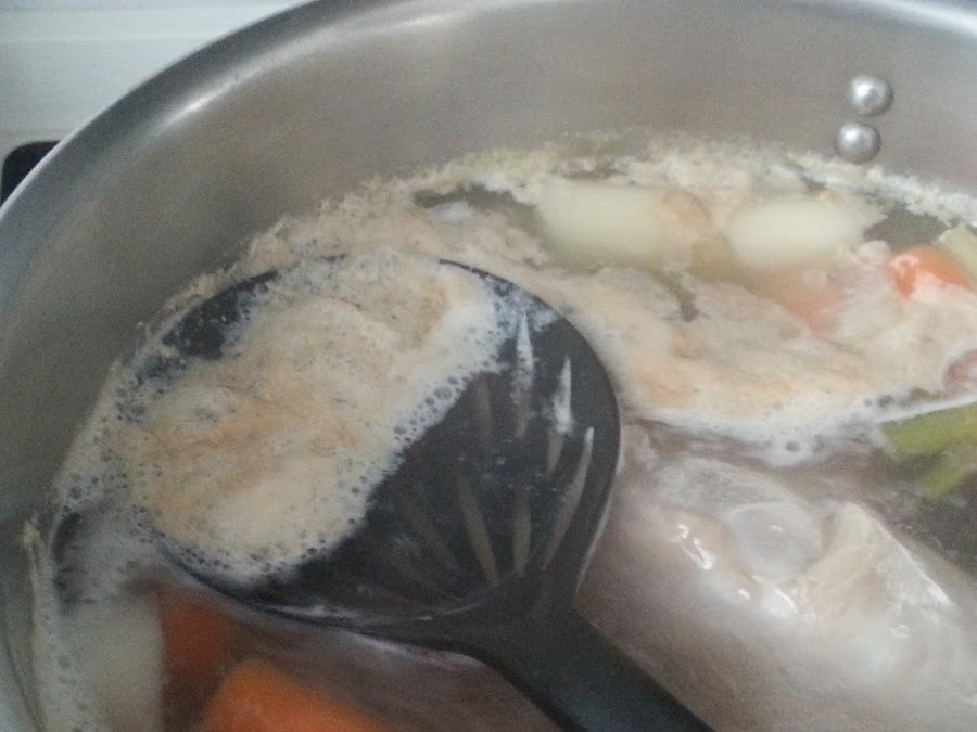6. - Retiramos la espuma con una espumadera (de ahí su nombre) que contiene la suciedad.