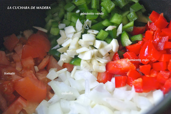 Empezamos lavando los pimientos y los tomates,pelamos los ajos y la cebolla y troceamos todo en pedazos pequeños