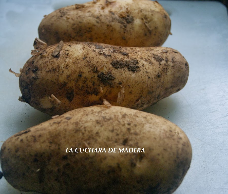 Comenzamos cortando con la punta del cuchillo y antes de acabar el corte tronchamos o tiramos del cuchillo para desprender el trozo y que rompa por una parte de la papa.