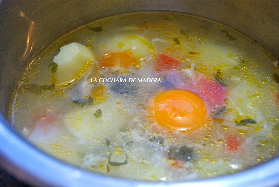 En canarias hay dos formas de tomar este caldo; lo podemos tomar tal cual o agregando un huevo por comensal al caldero y dejarlo un minuto en el fuego.