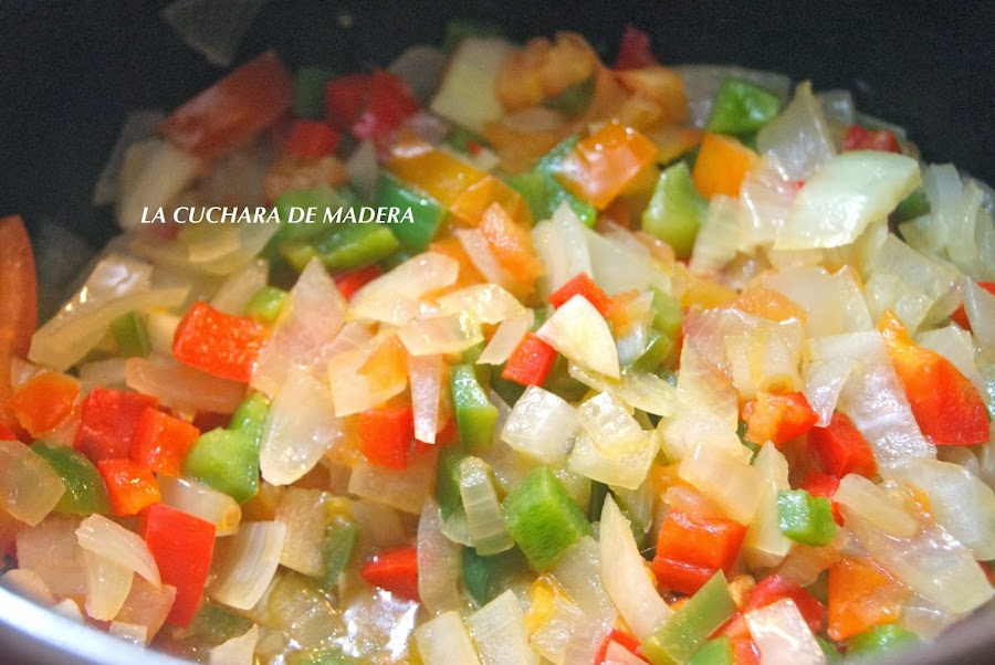 Lo metemos en el caldero con un poco de aceite a fuego medio/ bajo hasta que la cebolla esté transparente, removiendo para que no se queme.