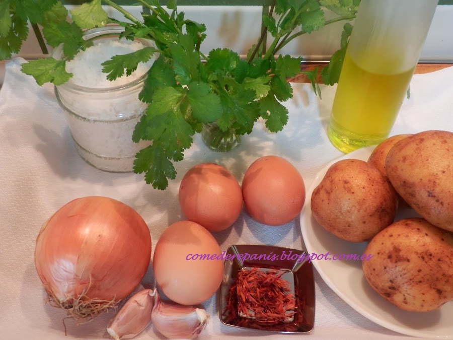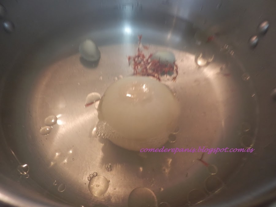 Ponemos a hervir el agua con un poco de sal, al gusto, el azafrán para dar color, la cebolla pelada pero entera, los dientes de ajo y un chorrito de aceite.