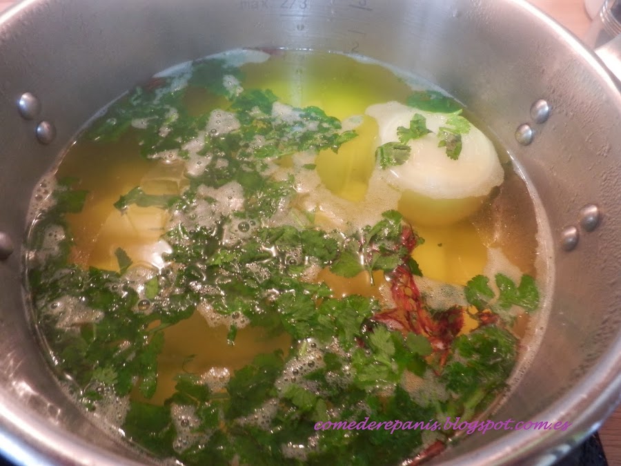 Mientras se calienta el agua, picamos el cilantro y se lo añadimos.