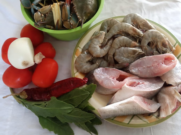 Lava los camarones quitando la parte de los bigotes pero conservando la cabeza, ya que esta da mas sabor al caldo. Igualmente lava el pescado y limpia las jaibas quitando el caparazón como lo muestra la foto.