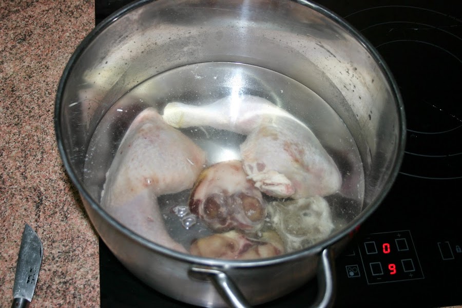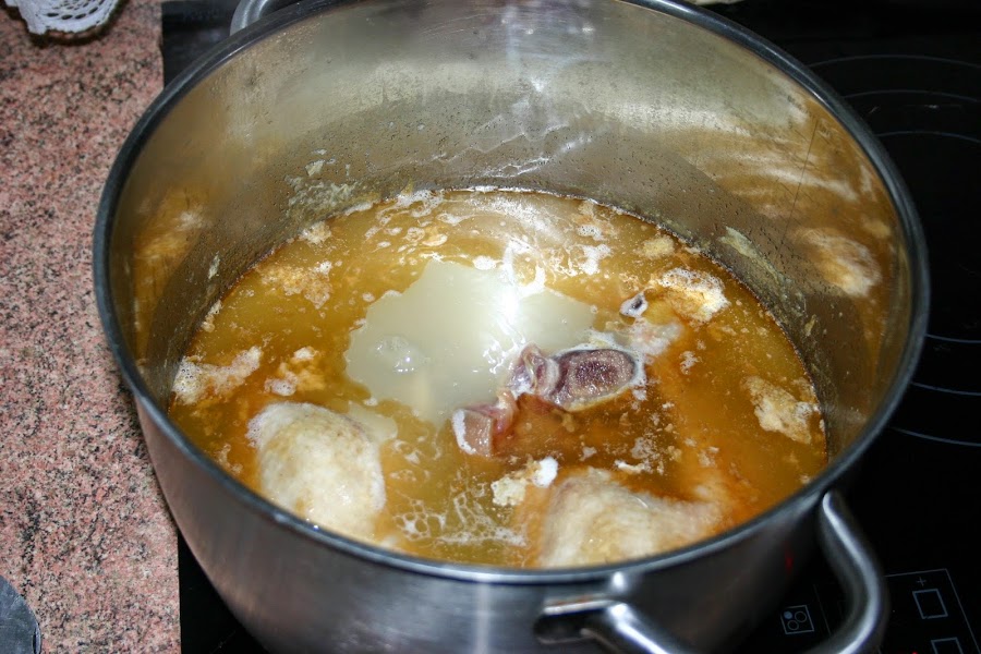 Hoy me he decido a compartir una receta "muy sencilla" con todos vosotros de cómo se prepara un caldo de pollo casero. Lo preparamos en una cazuela grande y lo guardamos en la nevera. Podemos conservarlo durante una semana, teniendo la precaución de hervirlo cada día. Ingredientes: Cascalla de pollo Zanahoria 1/2 cebolla 1/2 puerro Agua y sal Preparación: - Echamos bastante agua en u ...