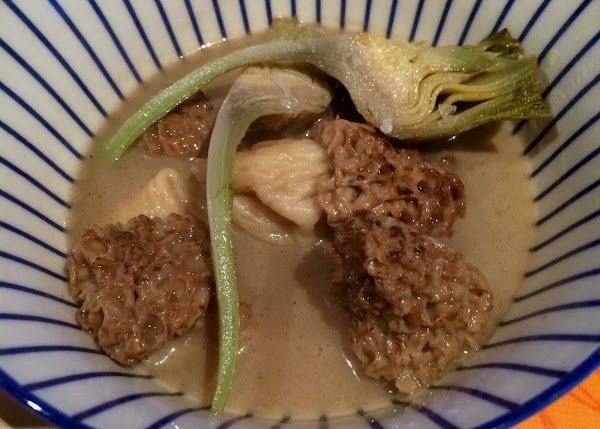 CALDO DE POLLO Y COLMENILLAS