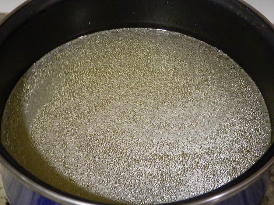 Llenamos de agua la cacerola, añadimos un poco de aceite de oliva, una cucharada pequeña, y una pizca de sal