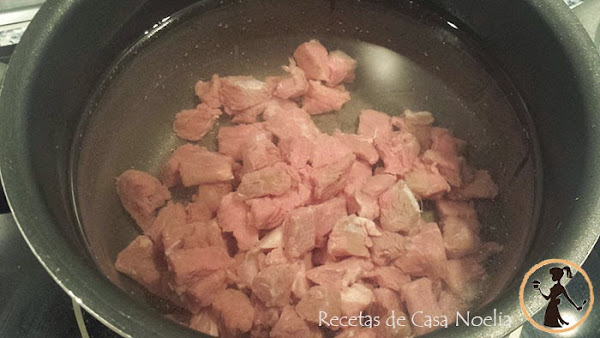 Lo primero que tenemos que hacer es cortar la carne en cachitos mas pequeños. ¿Os acordais de los dados del parchís de cuando eramos pequeños? Esos que eran pequeñitos y se perdían cada 2x3? Pues ese es el tamaño en el que hay que partir la carne. Entretenido... pero cuanto mas pequeñito, de verdad, mejor.