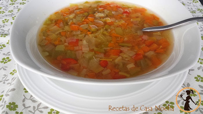 He de decir, que la receta original también lleva patatas cortadas a cubitos muy pequeñitos, que queda también genial. Pero ¿sabes que? que si lo haces sin patata está genial y tan ta ta chán! Lo puedes congelar!!! No sabéis la alegría que da llegar a casa a las mil y muerta de frio y darte cuenta de que tienes un táper en el congelador con caldo de verduras.... se me cae el lagrimón! Así que prefiero el sacrificio de que no lleve patata... y a cambio calentarme el cuerpo con un buen platito de caldo recién descongelado y calentito! (5 minutos al micro, oiga!!!)
