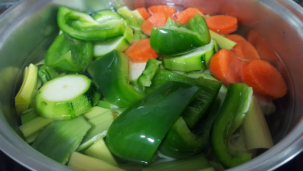 2.- Mientras cortamos todas las verduras a trozos y las lavamos bien.