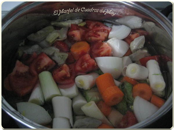 Se limpia y trocea toda la verdura, como en cuartos, para favorecer su cocción.