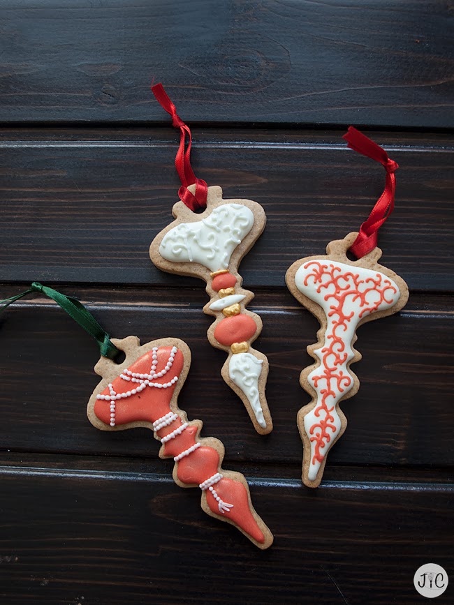 Aquí podéis ver parte de las bolas que hice. Cada una llevaba una cinta, roja o verde, dependiendo de los colores de las bolas. Además, las luces iban todas unidas por una cinta negra que simulaba el cable. Me lo pasé bomba pensando en cómo decorar el árbol, no os voy a engañar. Además, hice decoraciones con glasa que no me imaginaba que iba a ser capaz, pero tras muchas pruebas salieron cosas muy bonitas. Aún queda mucho por mejorar, lo sé, pero poco a poco voy manejándome mejor en este mundillo.