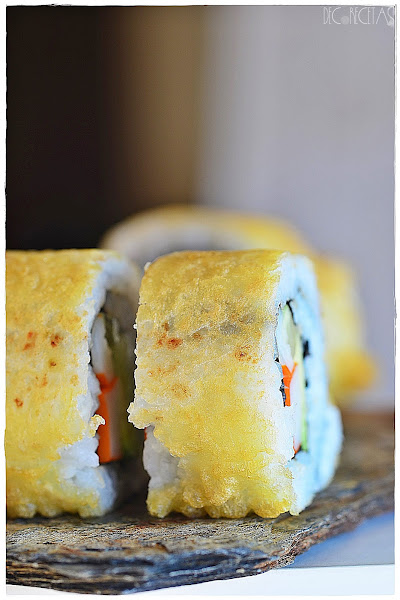 Este sushi, por supuesto que recomiendo comerlo recién sacado de la sartén, ya que la tempura está calentita y gana muchísimo