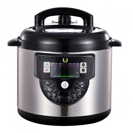 Es una freidora real, ya que incorpora un cestillo para las frituras. Tiene capacidad para 12 comensales, tiene un control absoluto de la cocción, se adapta a las necesidades de cada plato y ademas programable para 24 horas.