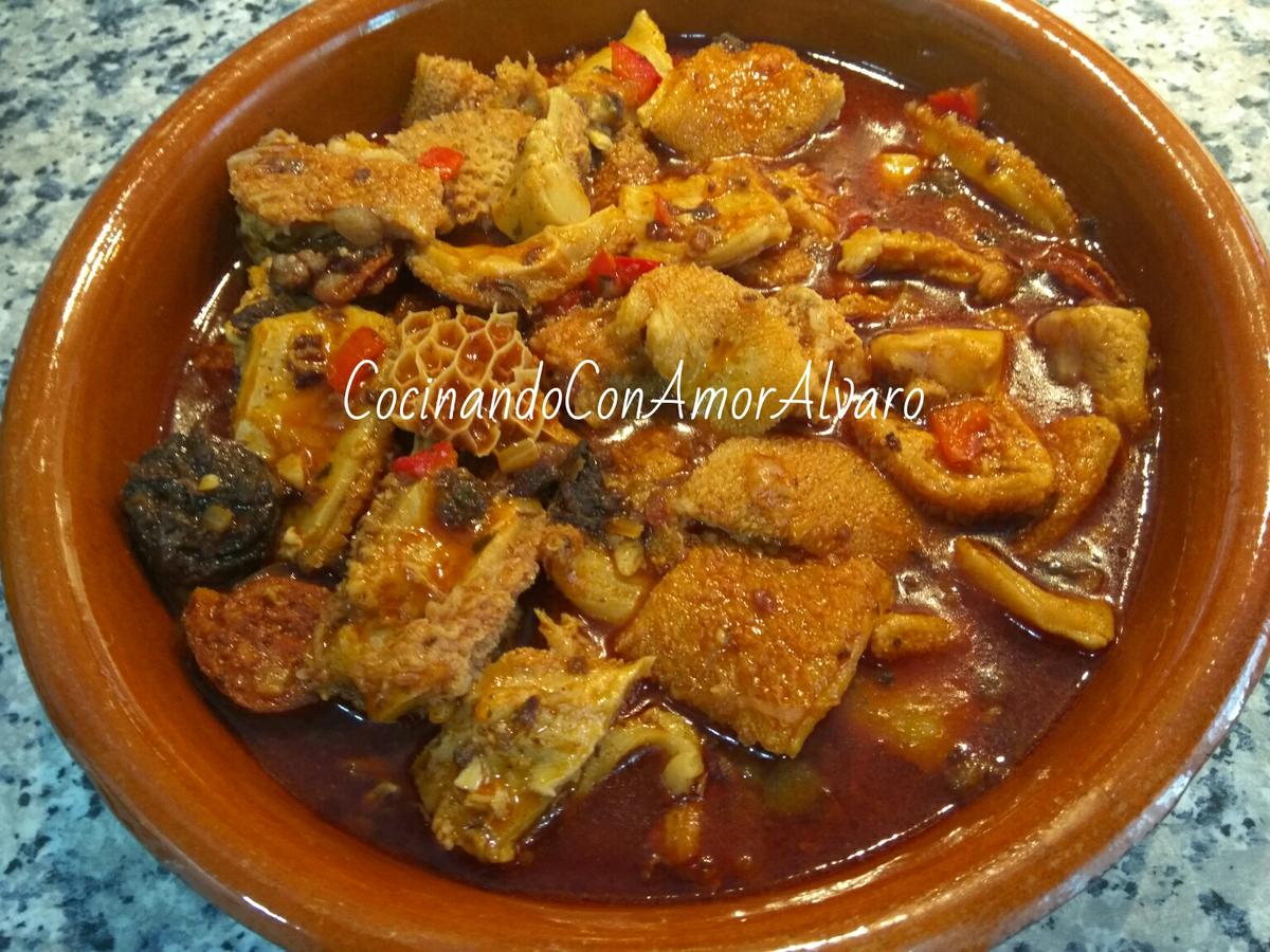 Estando listo el guiso, lo servimos en una cazuela de barro.