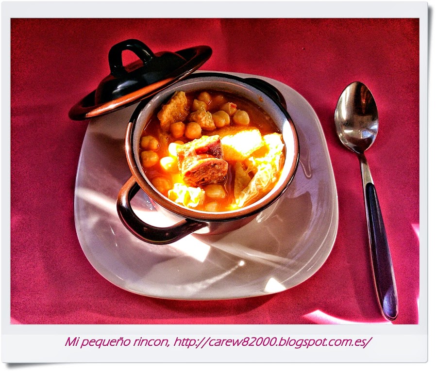 Una vez los tengamos casi listos, añadimos los garbanzos y dejamos unos 15 minutos cocer todo junto pare que se cojan todos los sabores.