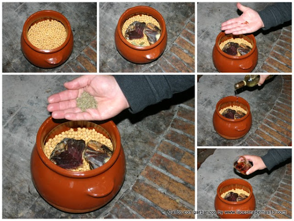 Ahora si, es todo muy facil echamos los garbanzos en la fuente de barro