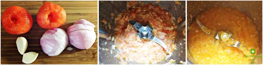 Coloca en el vaso de la Thermomix el ajo, tomate y aceite.