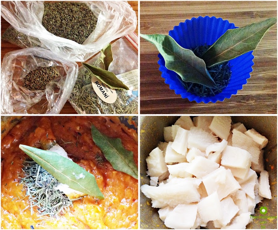 Hierbas aromáticas (tomillo, romero, laurel, perejil) un pellizco de cada.