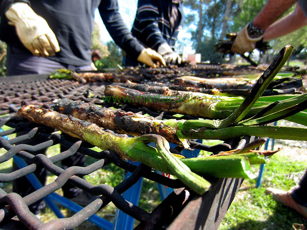 Para comerlos, se ha de arrancar la parte carbonizada, bañarlos en la salsa y comerse la parte blanca...