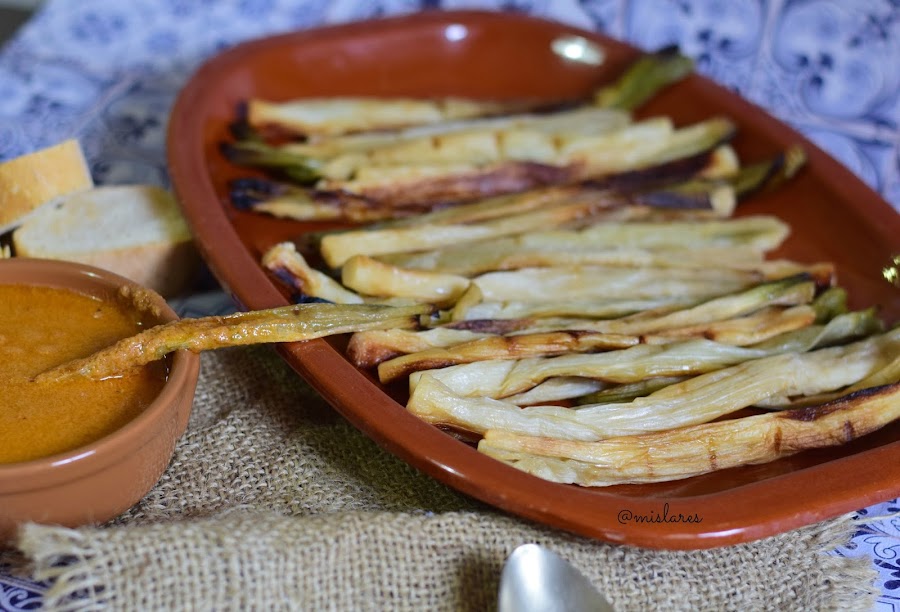 1. Limpiamos los calçots quitando las capas de afuera.