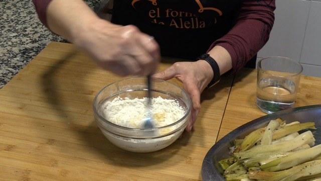 Batiremos todo hasta conseguir una masa no demasiado espesa, lo suficiente para que quede pegada en los calçots.