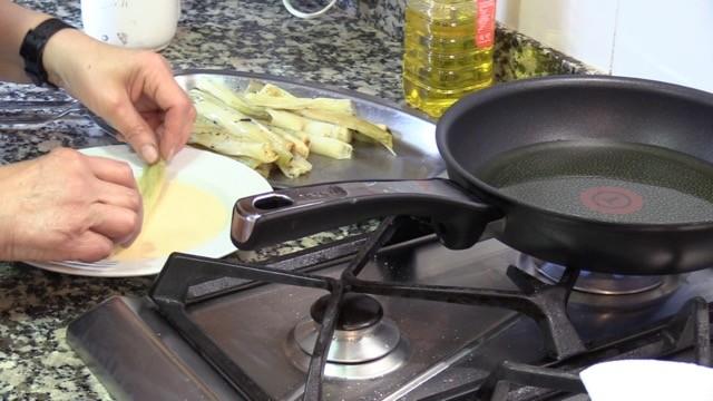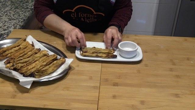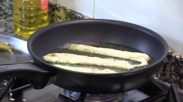 En una sartén echaremos abundante aceite para freír y cuando esté caliente, freiremos los calçots que previamente hemos ido rebozando con la masa preparada.