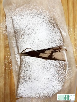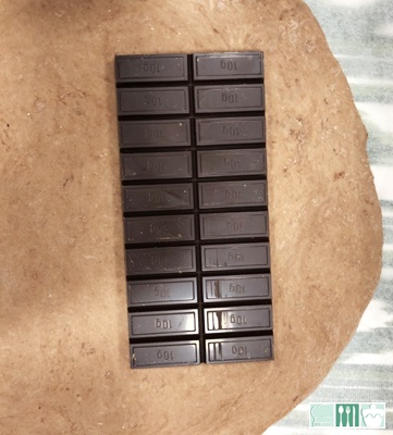 Poner la tableta de chocolate en un lateral y cubrirla con la otra mitad de la masa.