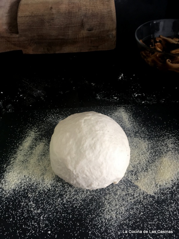 La masa es super fácil de preparar. Mezcla el agua con la levadura y unas gotas de aceite. En un bol amplio, forma un volcán con la harina tamizada y la sal. Añade poco a poco el líquido. Espolvorea la encimera con harina. Amasa durante 5-8 minutos hasta que la masa esté elástica, bolea e incorpora en una fuente de horno o en lo que te apetezca que has espolvoreado previamente con la sémola, es opcional, pero Gennaro lo hace y yo también, jejeje.