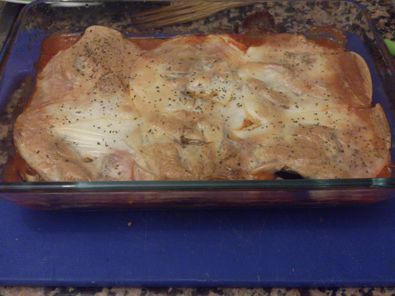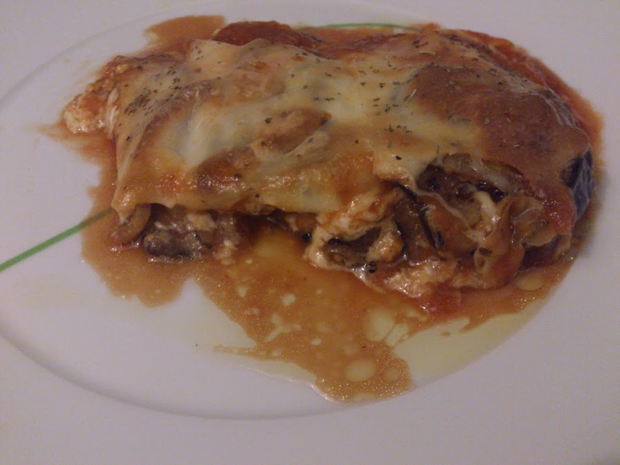 Ahora es hora de montar nuestra fuente, pones en la base un poco de tomate triturado, luego una capa de berenjena, otra de cebolla, y otra de queso y vuelves a repetir la operación, teniendo en cuenta, que la que tiene que terminar sea la de queso, una vez montado le añades un poco de albahaca y al horno unos minutos, y ya solo te queda disfrutar de su sabor.....