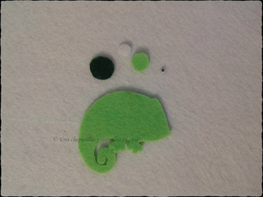 Pues con esos dos materiales ha salido este camaleoncito tan kawaii que ya le había echado un ojo hace tiempo navegando por pinterest :D