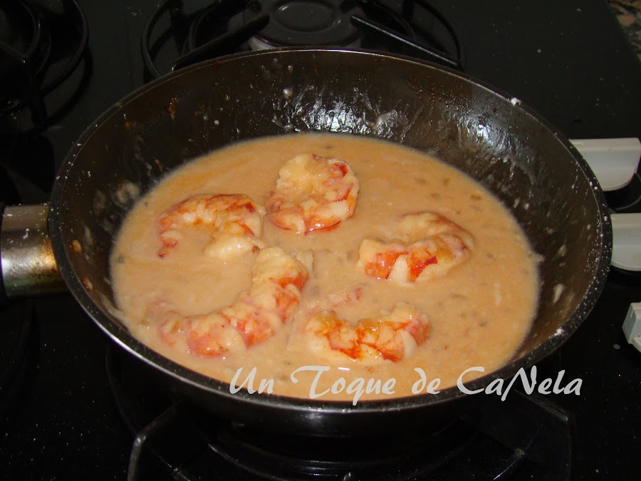 Tampoco he encontrado camarones y lo he hecho con gambones. No sé cómo estaría con ellos, pero con gambones, me ha quedado "pa chuparse los deos".