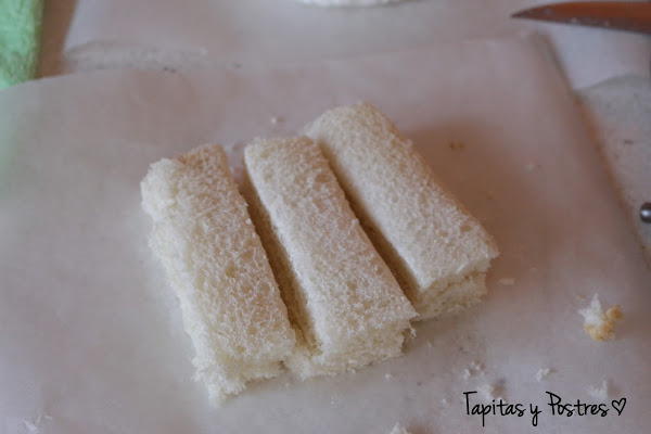 Preparamos el pan, podemos usar picos o barritas tostadas, o bien preparar unos crutones de pan de molde casero que hornearemos hasta que se doren.
