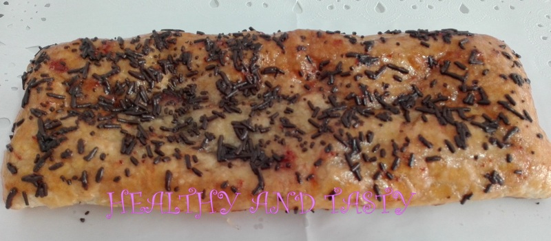 *Nota: Si queremos hacer napolitanas, seguimos le mismo proceso pero el tamaño es más pequeño. Para una napolitana normal, dividimos la lámina de hojaldre en tres, y para hacer mini napolitanas, la cortamos en rectángulos más pequeños.