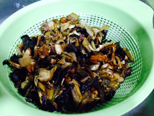 Posem a hidratar els bolets 8 hores abans en un recipient ple d"aigua.