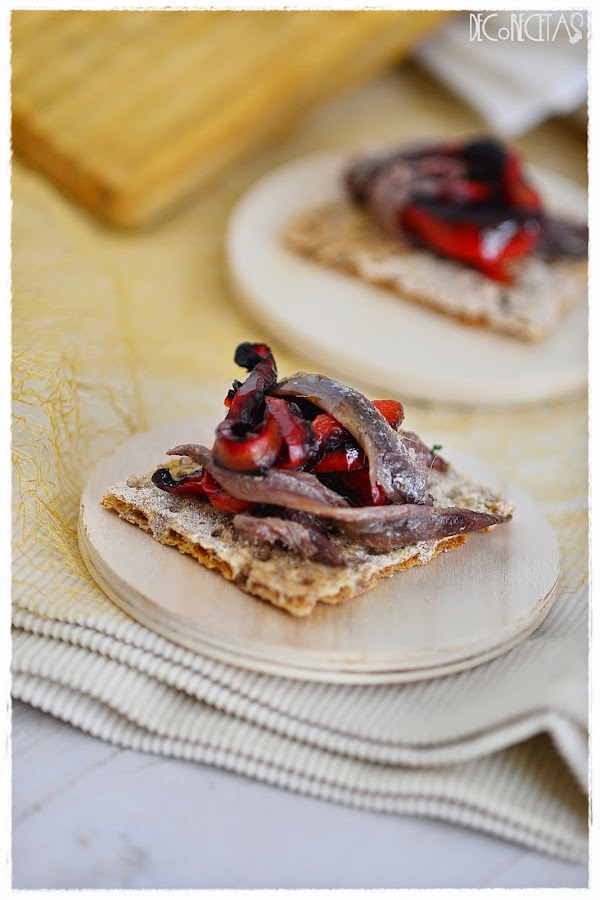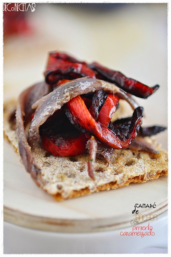 El canapé se monta mezclando el pimiento y la anchoa sobre una tosta, no tiene más. Un pincho que se come practicamente de un bocado para mezclar sabores.