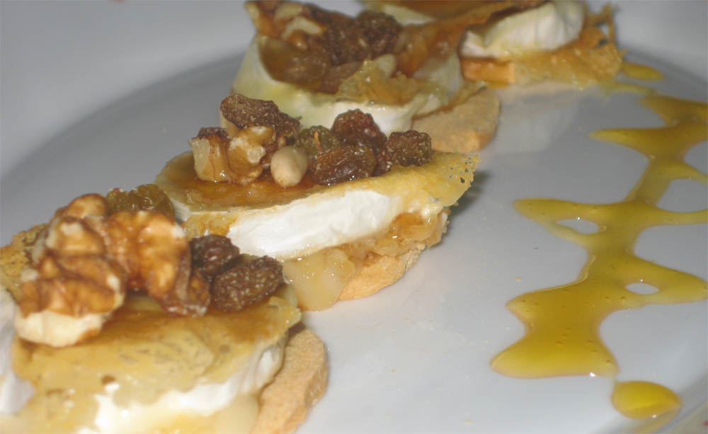 Preparación: Cortar el queso en rodajas no muy finas y pasar por la plancha y tostar por ambos lados un poquito con una gotita de aceite, muy poco, lo justo para engrasar la sartén.