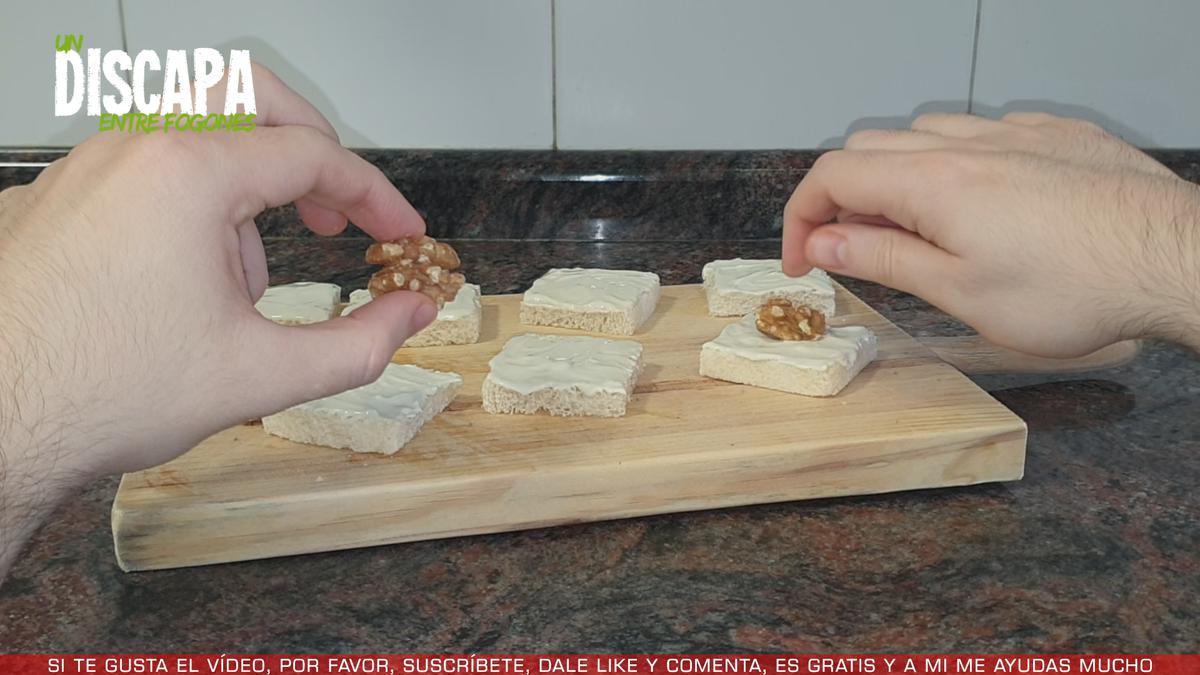 3Y por último, ponemos encima de cada canapé una nuez. Y así de fácil se hace este canapé.
