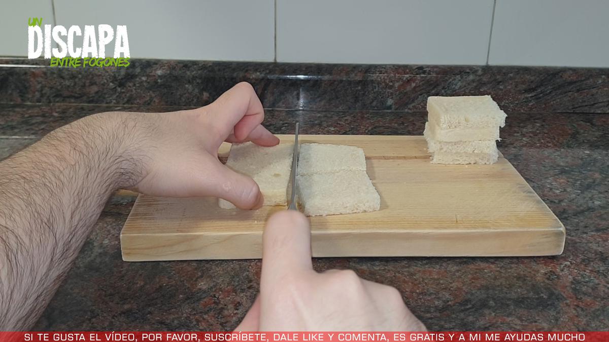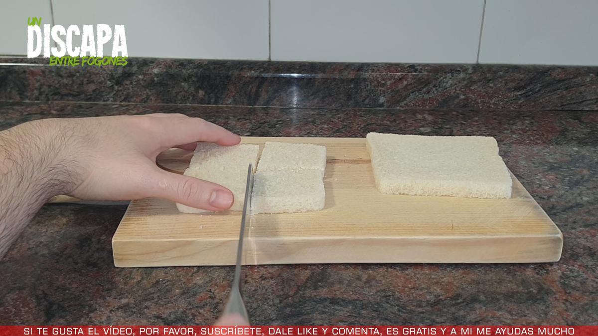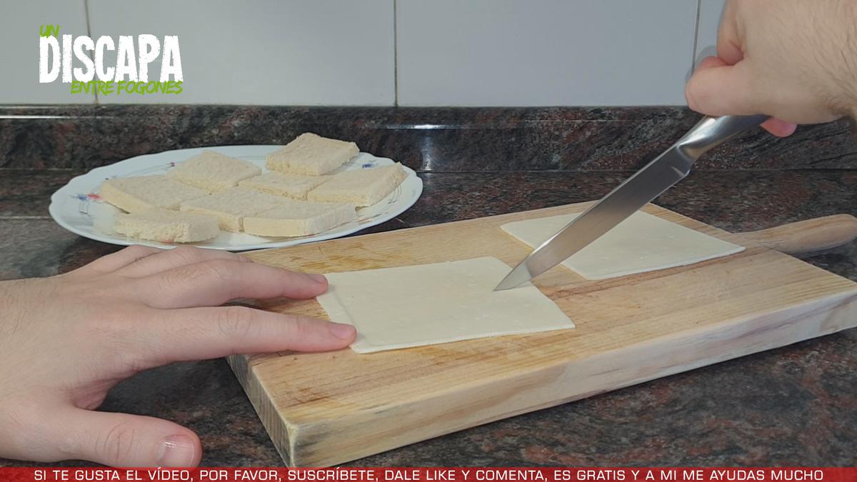1Cortamos en 4 partes iguales cada una de las rebanadas de pan de molde.