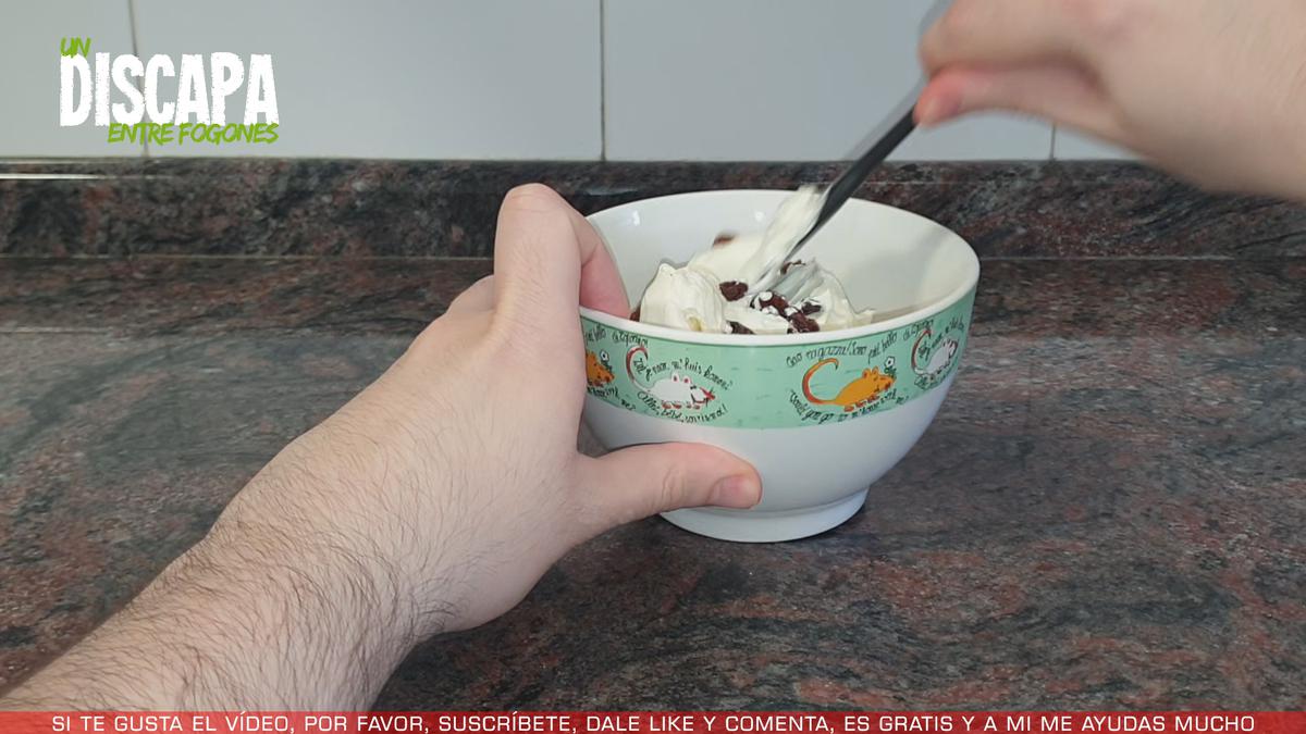 1Añadimos en un bol el queso crema y un puñadito de pasas, lo mezclamos bien para integrar las pasas.