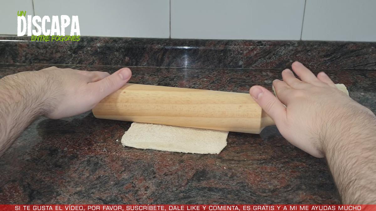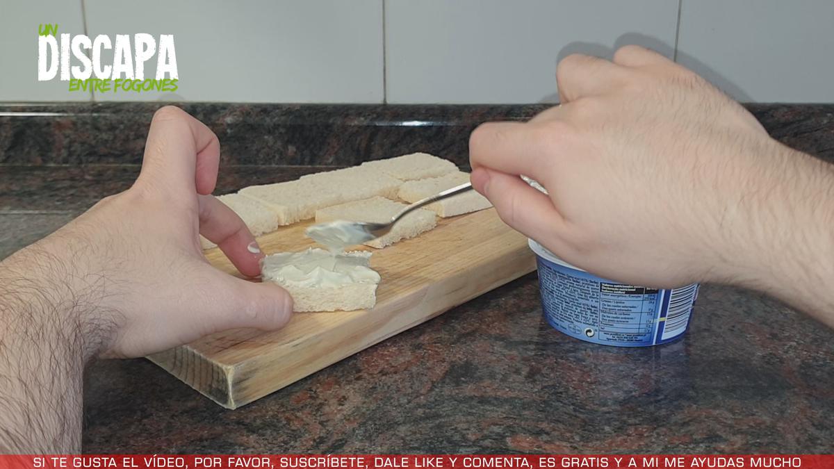 3Aquí tengo unas rebanadas de pan de molde, y con la ayuda de un rodillo las vamos a aplanar dejándolas lo más finas posible.