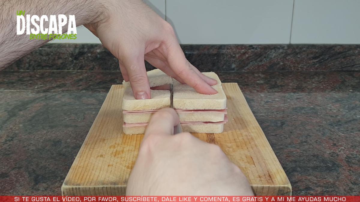 3Ahora cortamos el sándwich en 4 partes iguales.