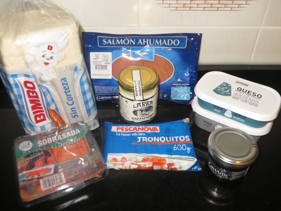 Ahora hacemos lo mismo con los siguientes, estiramos las rebanadas de pan de molde y untamos el queso crema tipo azul, colocamos encima un poco de sucedáneo de caviar y enrollamos. El siguiente canapé lo hacemos de queso crema normal y sobrasada, en este caso untamos el queso y luego la sobrasada y enrollamos.