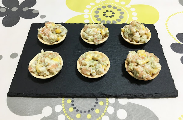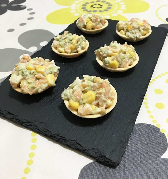 - Mezcla en un bol el salmón, el aguacate, el maíz y la mayonesa y remueve para que se mezclen bien todos los ingredientes.