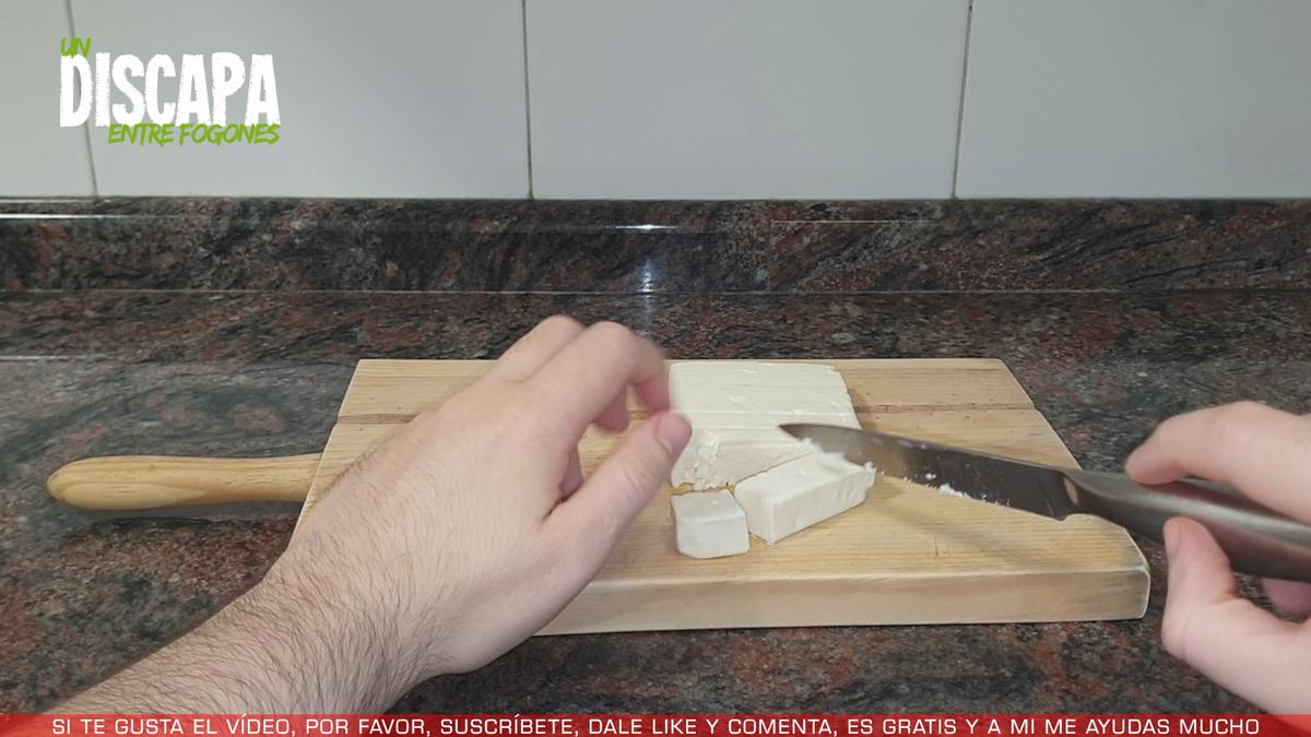 Cortamos unos cubitos de queso feta de 1x1cm aproximadamente.