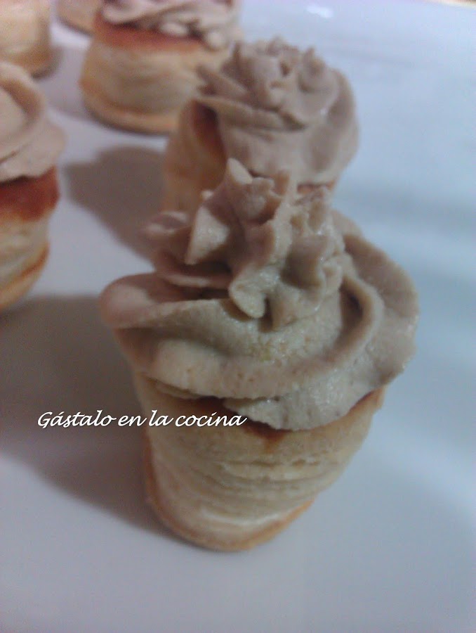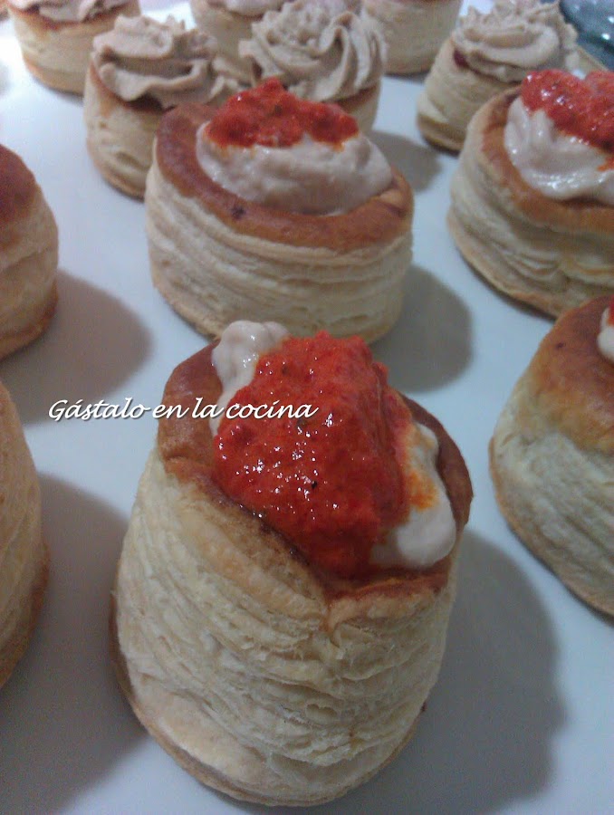 Podeis ponerlo sobre unos cortes de pan de molde, sobre biscottes, en tartaletas o volovanes como hice yo. Los volovanes comprados, que no tenía ni tiempo ni manos para tanta cosa!