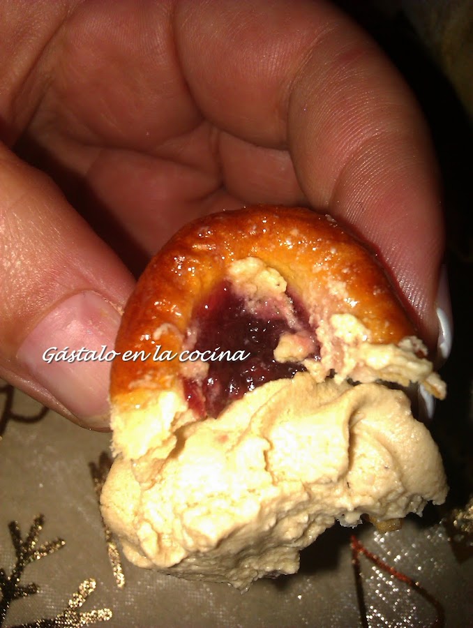 Variación por qué? pues porque dentro lleva un trozo de queso de cabra en lugar de una almendra, que es lo que realmente lleva. A alguien le parecerá una burrada pero.. yo soy ilicitana asi que me permito esta herejía.